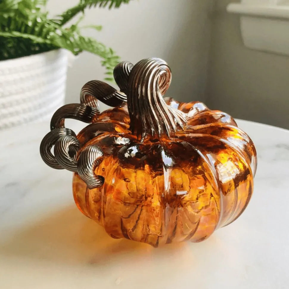 Massachusetts glassblower Luke Adams has created the Harvest pumpkin which will bring the spirit of autumn into your home. Each piece varies with a warm amber-colored base and a pale taupe stem. The piece encompasses the colors of falling leaves and mulled cider and is a perfect addition to the Thanksgiving table or throughout the year.